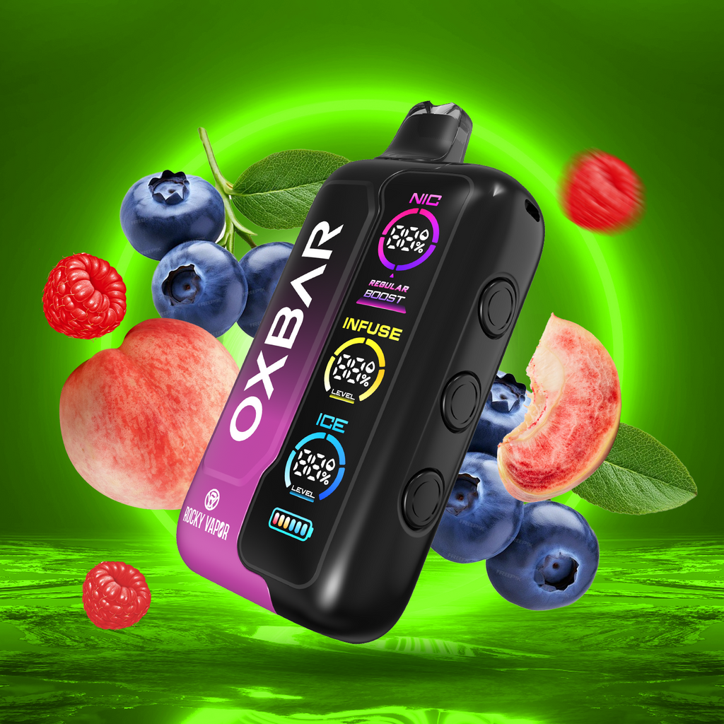 Another disposable vape, the Oxbar Tri-Fusion is a technological advancement in vaping. With its large 30mL e-liquid capacity and strong 1000mAh rechargeable Type-C battery, this gadget guarantees dependable operation for extended periods of time. It is distinguished by its special tri-button customization mechanism, which allows you to adjust the ice level, sweetness (infuse) intensity, and nicotine level as needed. You may therefore customize your hit to be bold and cool, sweet and soft, or anything in between.