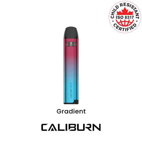 The device is compatible with the 0.9 Ω CALIBURN A2 refillable pod. The air-activated auto draw makes it easy to use and an ideal device for vapers.