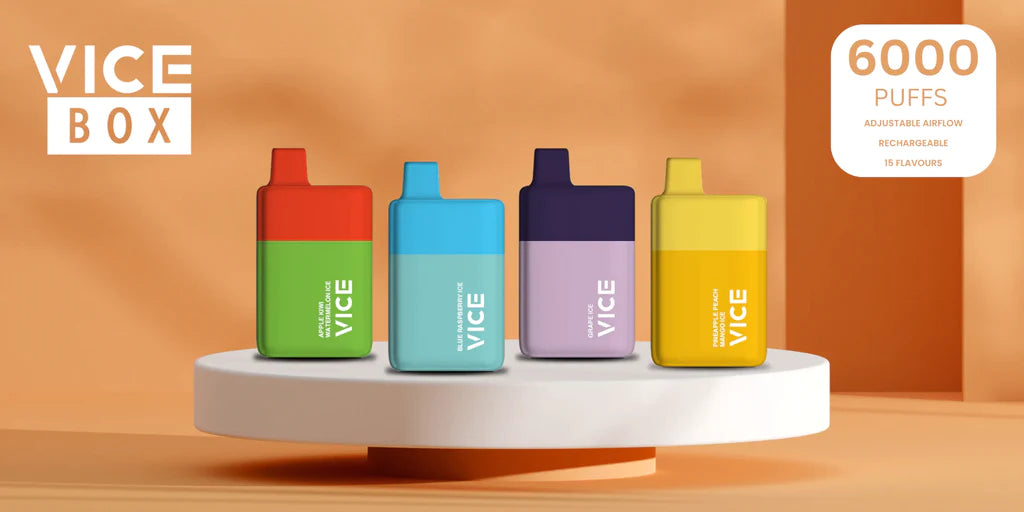 Vice Vape unveils the new Vice Box, a discreet, small, and comfortable mouthpiece disposable vape with 6000 puffs. It has a smooth auto fire draw that guarantees a pleasurable vaping experience. With its mesh coil technology, you will not only receive a full-body high but also incredible flavour.